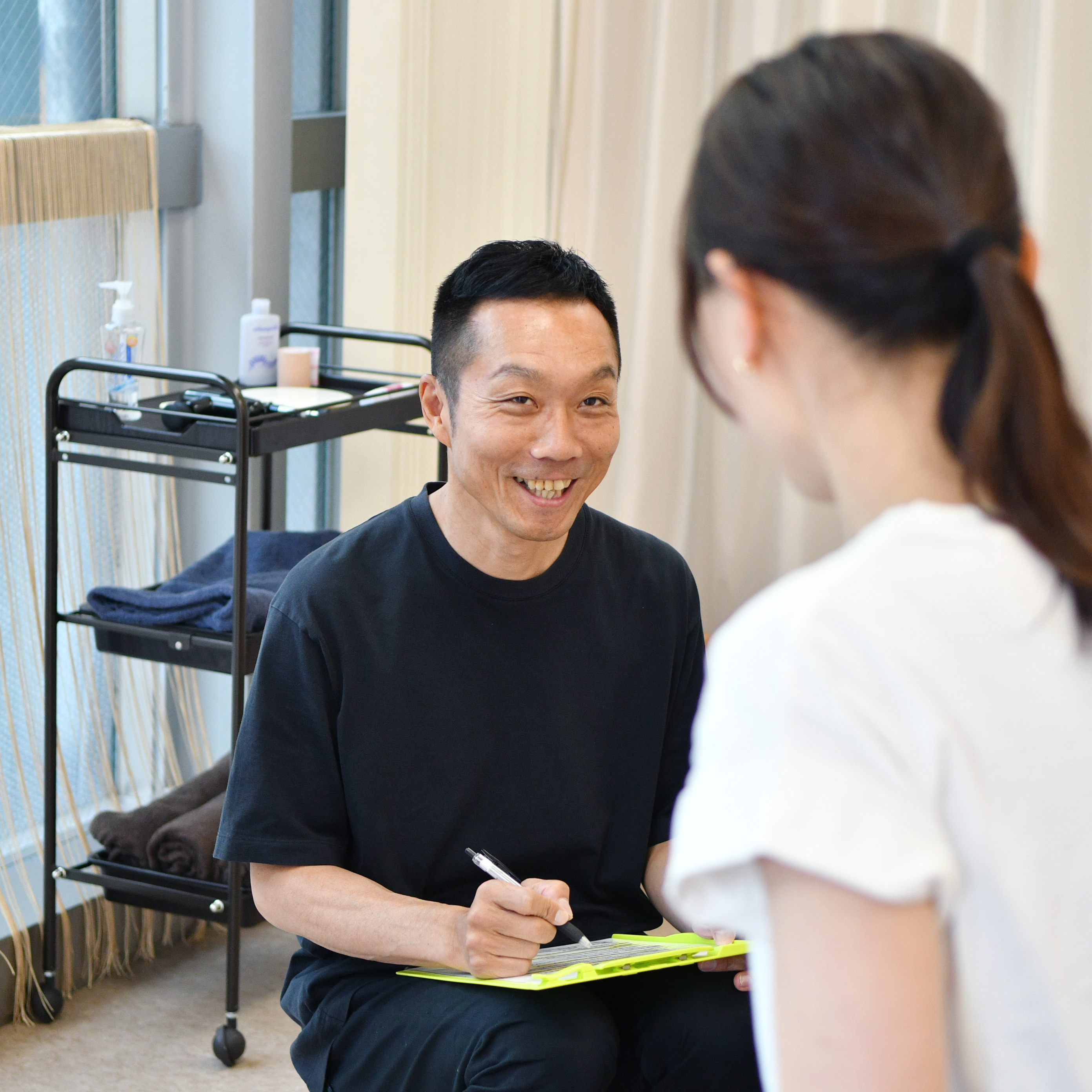 - 施術前に丁寧なカウンセリングをいたします。症状の背景にある生活環境などについてもヒアリングいたします。